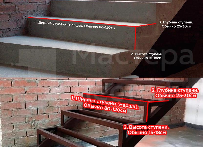2. Размер одной прямой ступени (высота, ширина и глубина, см. рисунок ниже)